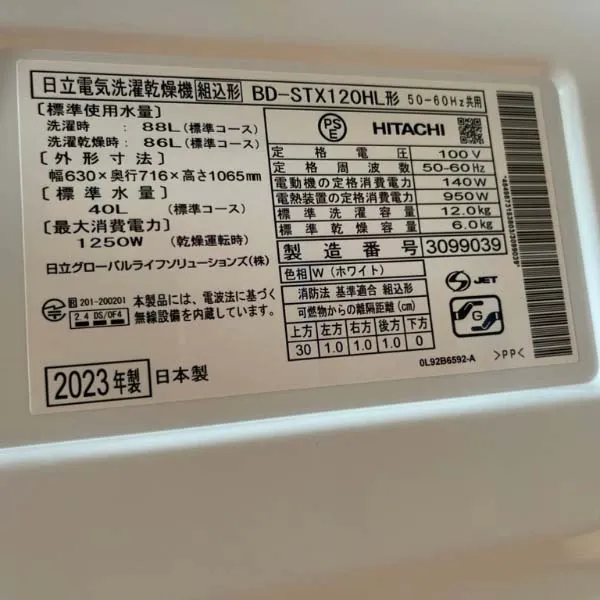 Thông Số Kỹ Thuật Của Máy Giặt Hitachi BD-STX120HL