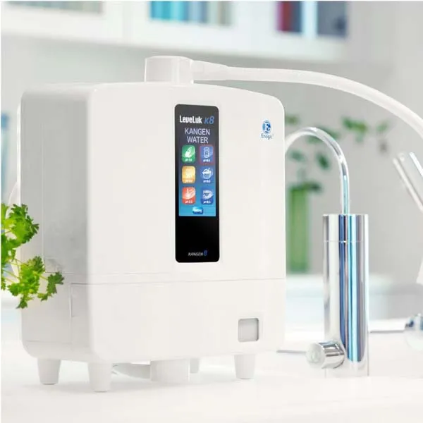 Máy lọc nước ion kiềm Kangen Leveluk K8 là dòng sản phẩm cao cấp nhất hiện nay với tông màu trắng thanh lịch, màn hình hiển thị LCD cảm ứng cùng trang bị 8 ngôn ngữ khác nhau.